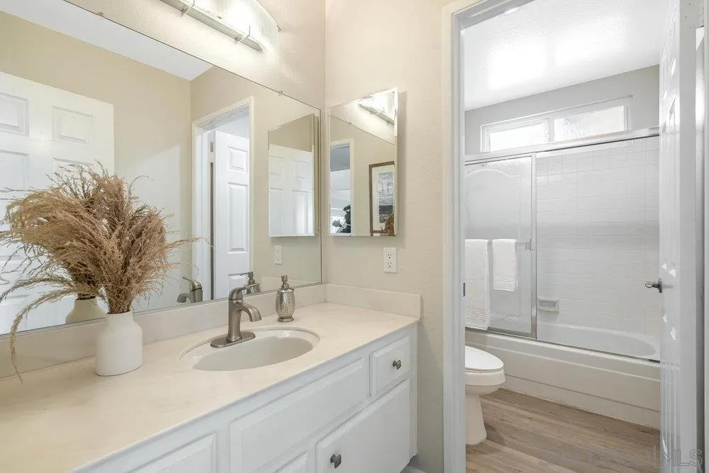 Step into coastal elegance with this meticulously newly remodeled home set in a private cul-de-sac in the heart of Carlsbad. Spanning 2465 sq ft, this property merges tasteful design with modern amenities to offer an unparalleled living experience. The grand entranceway reveals a spacious open floor plan, anchored by new waterproof vinyl flooring with a rustic, natural wood plank design. The living area seamlessly flows into the brand-new chef's kitchen, a culinary masterpiece boasting a professional ZLINE 6-burner gas range, convection oven, and microwave. This meticulously designed space is set to inspire your culinary journey and ignite your passion for cooking and entertaining. On the main level, you'll also find a large bedroom that can easily serve as a study, presenting flexibility for multi-generational living or work-from-home arrangements. Upstairs, the expansive master suite provides a personal sanctuary complete with a private deck offering breathtaking views. Each of the remaining 3 bedrooms are generously-sized, creating comfortable spaces for relaxation and rest. The property's exterior is equally inviting, featuring a lush, oversized yard perfect for outdoor entertaining or quiet contemplation. An added bonus of a 3-car garage ensures ample space for storage and convenience. In terms of location, you're within reach of top-rated schools, shopping, dining, and the beach, bringing together tranquility and convenience in one address. With its careful remodel and modern features, 6427 La Garza Ct offers a slice of Carlsbad's finest living.